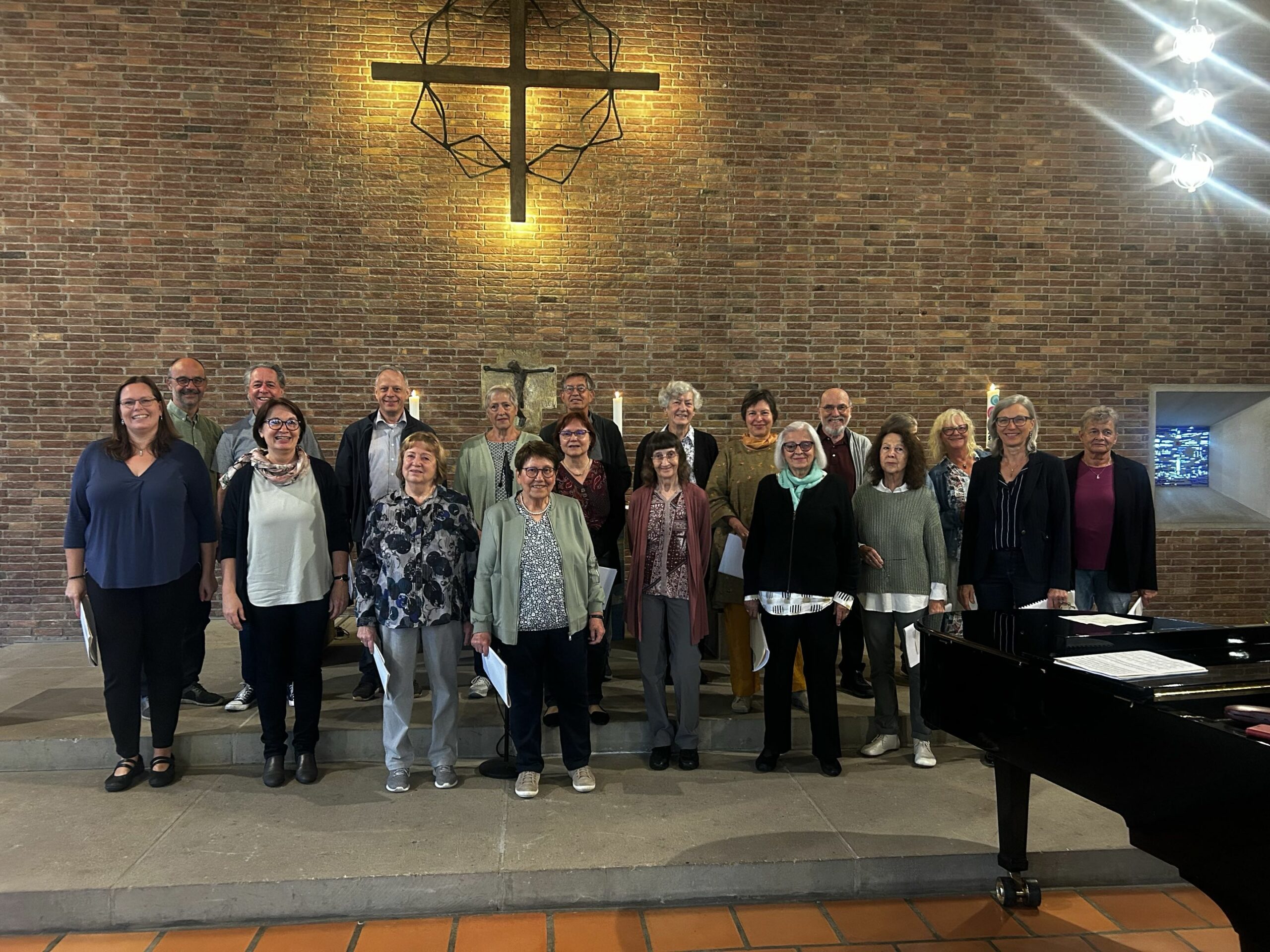 Unser Chor besteht aus einem festen Kern von rund 25 Sängerinnen und Sängern. In der Regel nehmen zwischen 16 und 19 Personen an den Proben teil.Eine besondere Rolle spielt auch das gemeinsame Auftreten: Einmal im Jahr gestalten wir einen Gottesdienst musikalisch mit.
