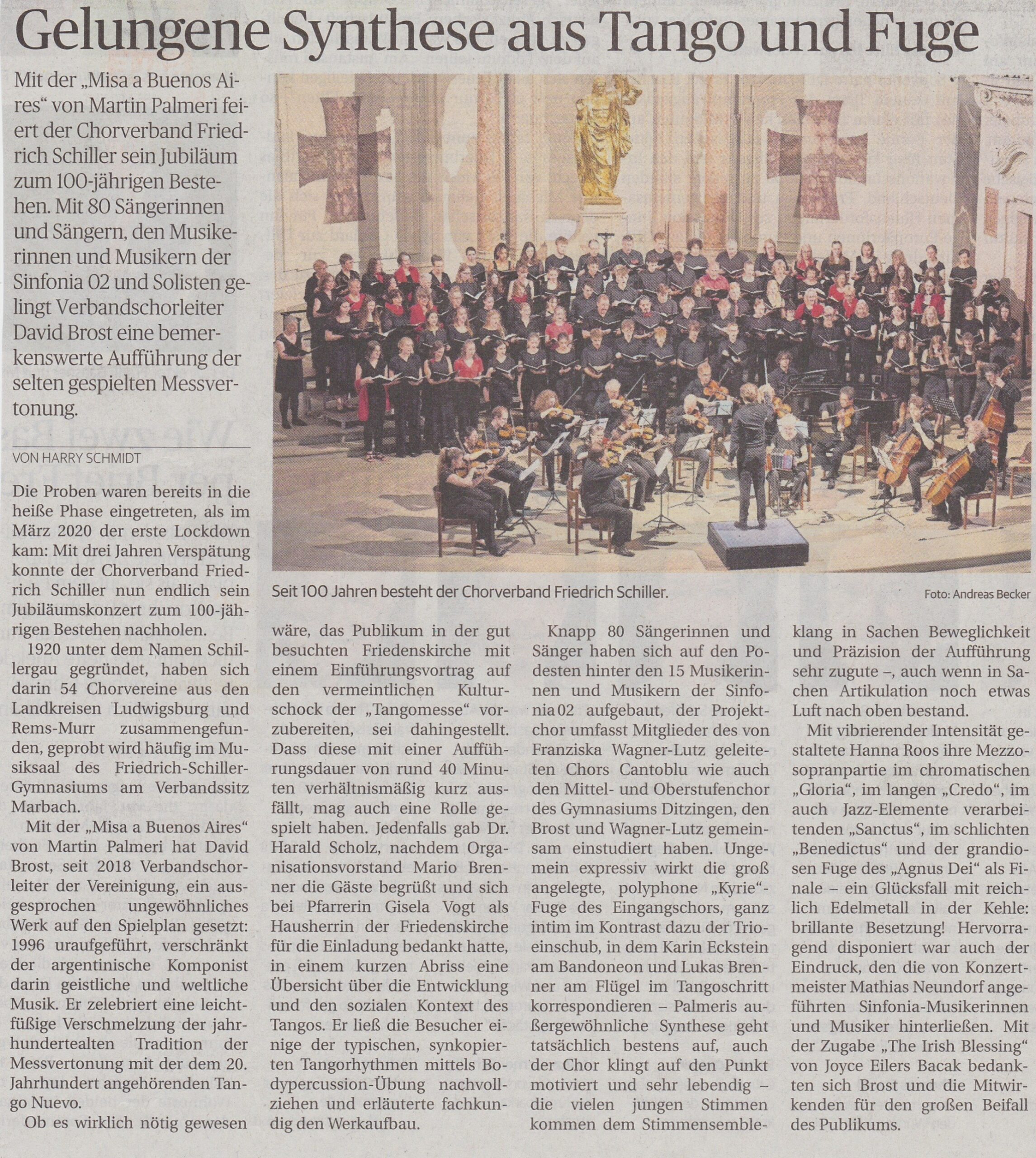 → Nachgeholtes Jubiläumskonzert zum 100-jährigen Bestehen des Chorverbands. - Jubiläumskonzert: Palmeri – Tangomesse (2020, abgesagt)